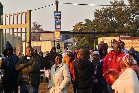 Voters queue early morning outside an IEC voting station in Nellmapius, east of Pretoria.